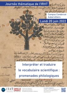 Interpréter et traduire le vocabulaire scientifique : promenades philologiques – IRHT – Campus Condorcet Aubervilliers
