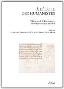 Nous avons le plaisir d’annoncer la parution d’À l’école des humanistes. Pédagogies de la Renaissance, entre manuscrit et imprimé, un ouvrage sous la direction scientifique de Lucie Claire, Martine Furno, Anne-Hélène Klinger-Dollé, chez Droz dans la collection en accès libre « Eruditio ». En voici la présentation :