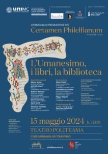 Cérémonie de remise des prix de la 7ème édition du Certamen Philelfianum (http://philelfiana.unimc.it/lumanesimo-i-libri-la-biblioteca/)  un concours de traduction de textes humanistes latins pour les trois dernières années des lycées italiens (https://philelfiana.unimc.it/certamen-philelfianum/).