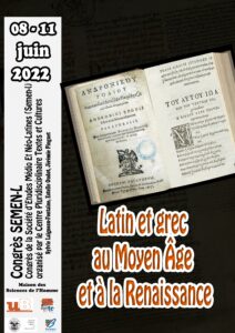- 15h10-15h30 : Laure Hermand-Schebat (Université Jean Moulin Lyon 3), « Lire Térence à la Renaissance, avec ou sans le grec : de Politien à la Triplex»