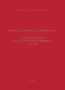 Florence Vuilleumier Laurens, L’Université, la robe et la librairie à Paris. Claude Mignault et le Syntagma de symbolis (1571-1602), Genève, Droz, « Travaux d’Humanisme et Renaissance », 2017, 329 p., 49 €.