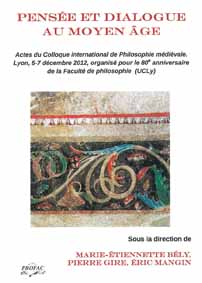 Pensée et dialogue au Moyen Âge, sous la direction de Marie-Etiennette Bély, Pierre Gire et Eric Mangin, Lyon, Editions Profac Théo, 2013. 191 pages.