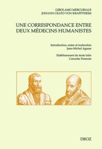 Girolamo Mercuriale, Johann Crato von Krafftheim, Une correspondance entre deux médecins humanistes, introduction, notes et traduction Jean-Michel Agasse, établissement du texte latin Concetta Pennuto, Genève, Droz, 2016.
