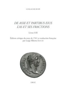 Guillaume Budé, De Asse et partibus eius / L’As et ses fractions. Livres I à III, édités et traduits par Luigi-Alberto Sanchi, Genève, Droz, 2018 (THR 590). 744 (CXLVIII + 596) pages. ISBN: 978-2-600-05877-3